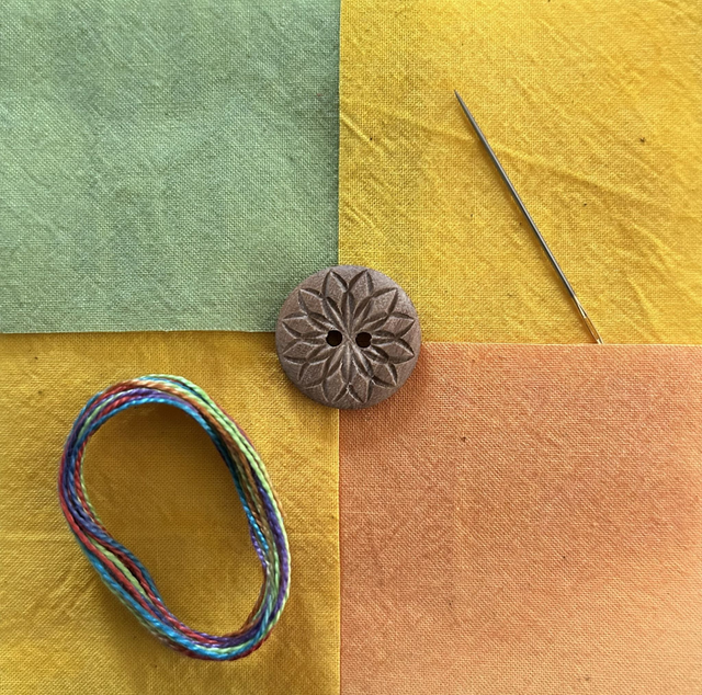 Content: bamboo/cotton mix batting, Cherrywood Fabrics, Eleganza 8wt, Tulip embroidery #5 needle, button